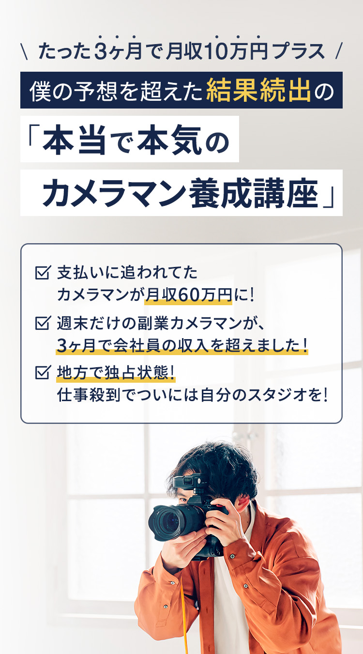 地方都市の方がカメラマンが少ない分、需要が多いケースもあります。