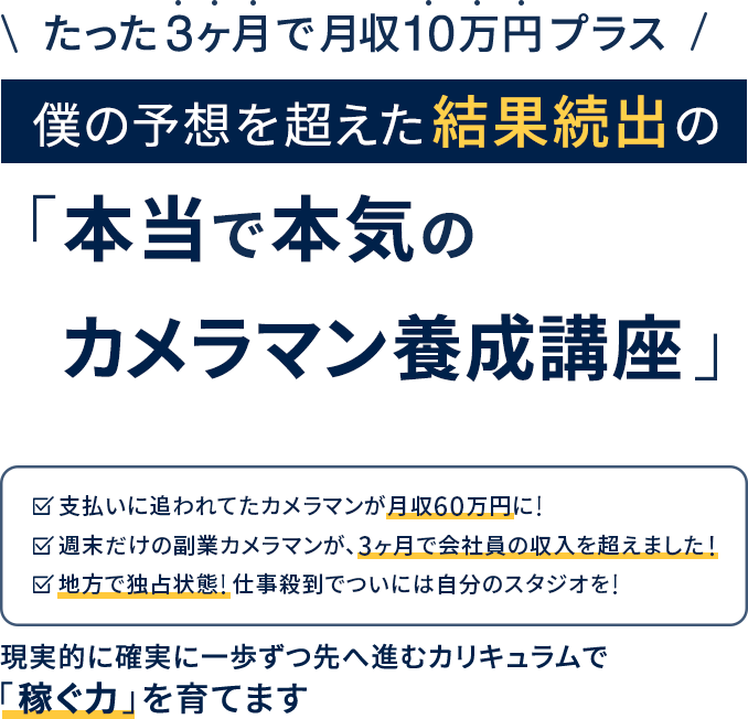 すでに他のジャンルでカメラマンとして仕事をしているレベルならすぐに稼げるようになります。
